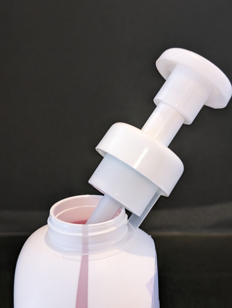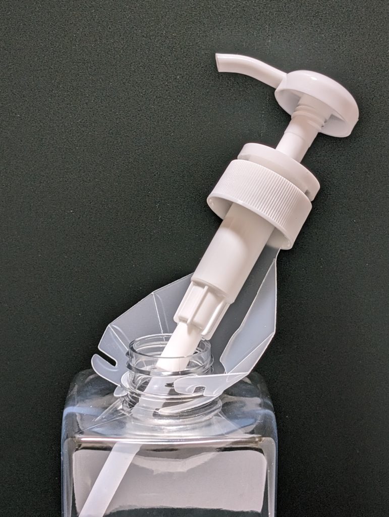• 容器のポンプ付ディスペンサーを外に取り出さなくても、注ぐことが出来る。(ポンプディスペンサーを衛生的に保てる)