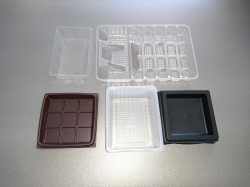 実績:大手P社のチョコレート用トレー、東京の代表的お土産(TB)の洋菓子用トレー、あられ、煎餅トレー饅頭等の和菓子、加工食品トレー。